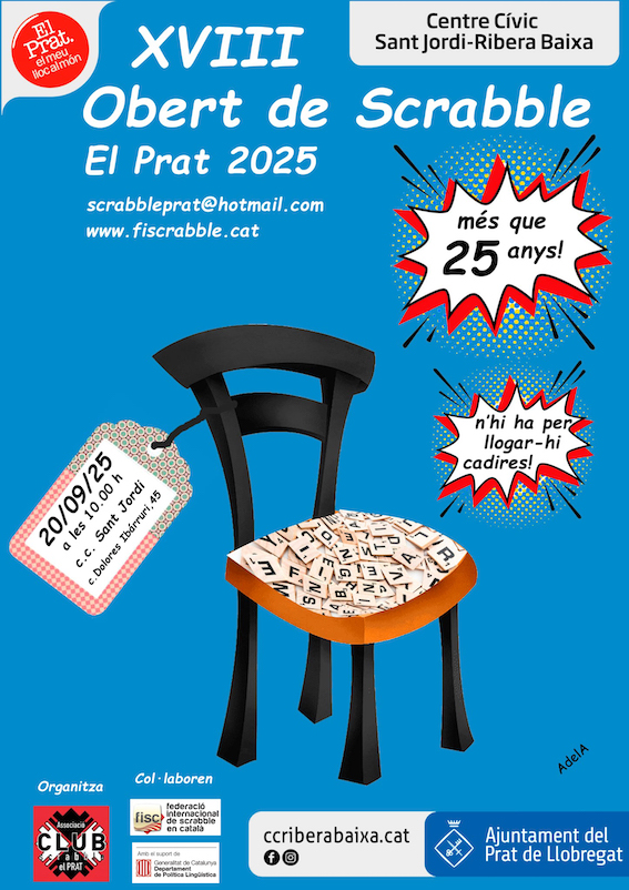 El proper 20 de setembre d’enguany se celebra, al costat de casa meva, un campionat de scrabble en llengua catalana. A continuació deixo el cartell: