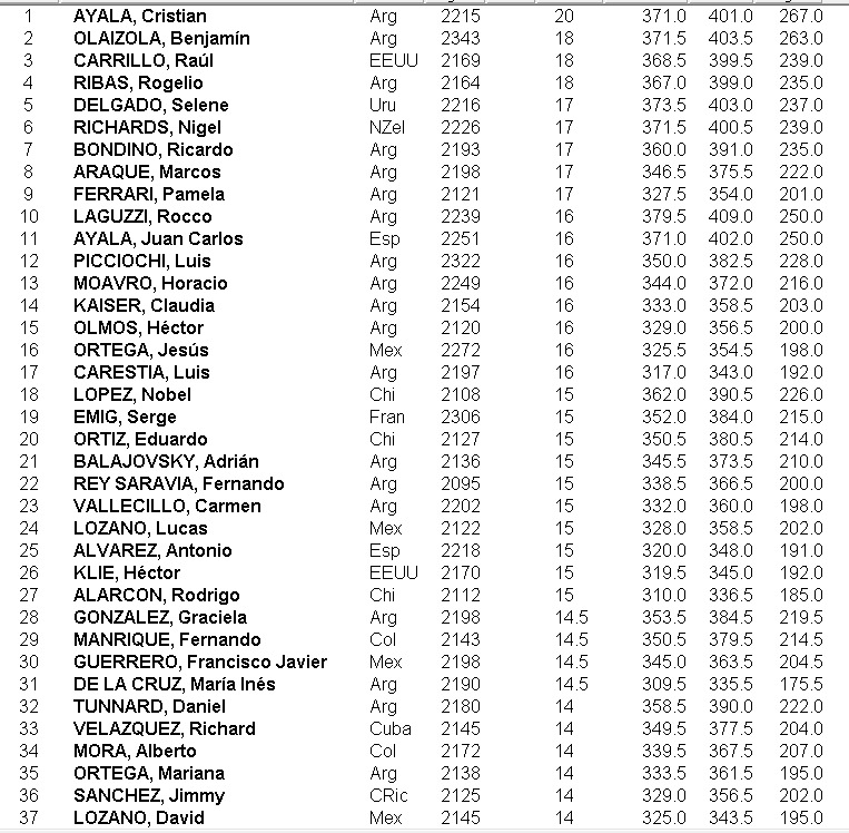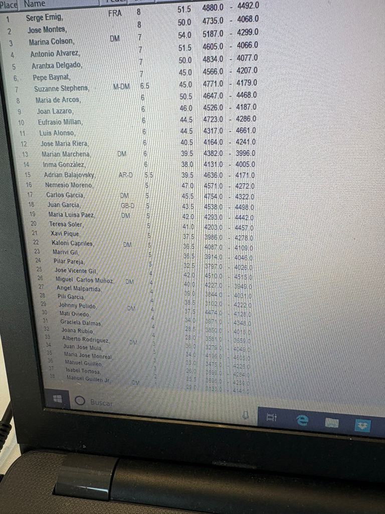 Ja tenim la puntuació en punts SC de l’Obert del Prat, 260,4 punts. Hem de mencionar un petit detall que comença a passar en alguns torneigs, aquells jugadors que hi figuren a la llista de participants i després no juguen o juguen només un nombre molt limitat de partides malgrat ser-hi tot el dia al campionat sense cap problema. En aquest cas, els hi compto com a jugadors a efectes dels punts però és molt possible que deixi de fer-ho properament per ser més just en la classificació.