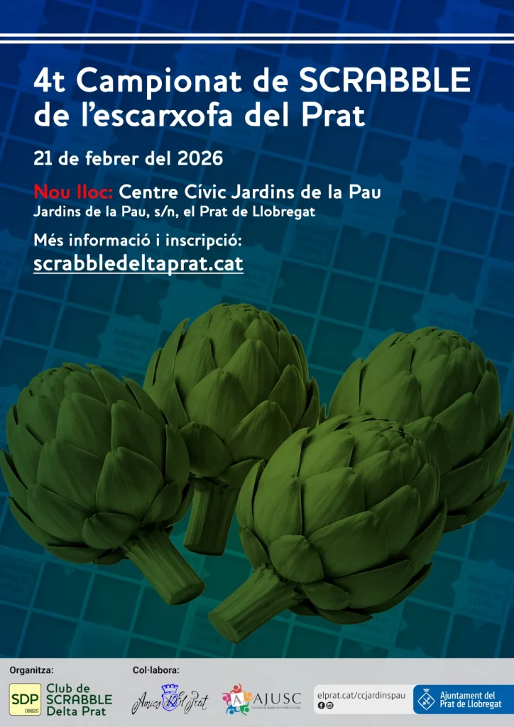 FG: El 21 de febrer de 2026 celebrarem el 4t Campionat de Scrabble de l’escarxofa del Prat, que és el nostre campionat de Scrabble clàssic d’1 contra 1. Com la majoria de campionats, té un format obert en què la majoria de jugadors són vinguts d’arreu de Catalunya i estem molt contents de comptar amb alguns dels millors jugadors de Scrabble en català entre els inscrits. Amb aquesta idea, vam pensar que dedicar el campionat a un dels productes pratencs més reconeguts, les escarxofes, era una bona forma de promocionar-nos com a ciutat de portes enfora i de donar-li un tret diferencial respecte a altres campionats. Esperem tenir una participació al voltant de la trentena de jugadors.