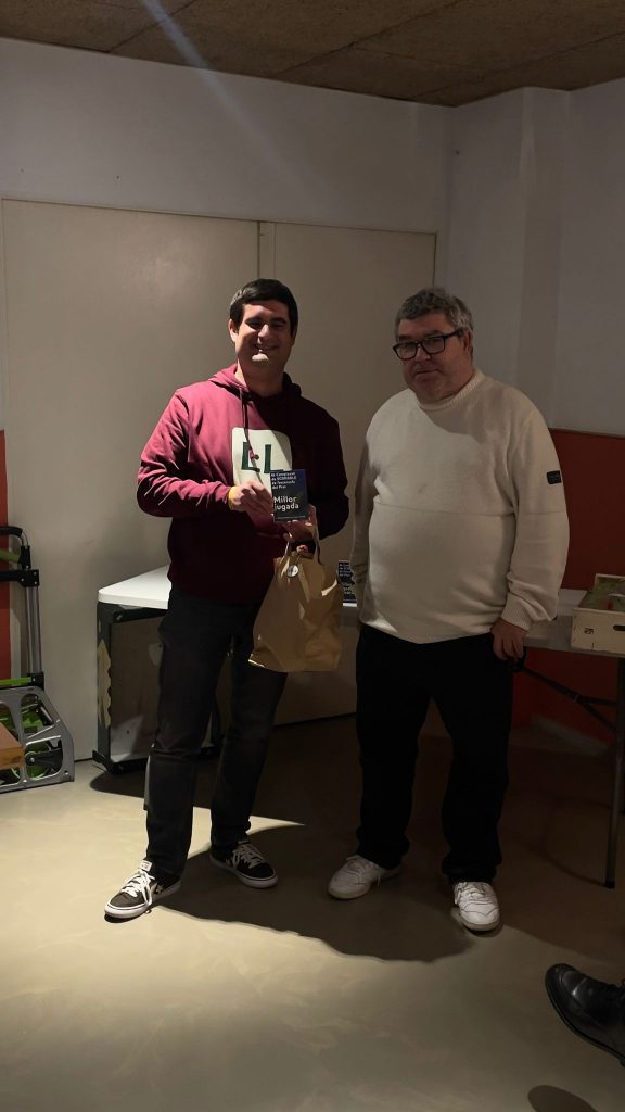 En un nou escenari, el centre cívic Jardins de la Pau, el Joan Andreu ha donat la sorpresa davant de competidors amb més bona classificació i s’ha imposat amb un ple de sis victòries. En Joan repeteix victòria -com ens recorda l’Albert Rodríguez- ja que havia guanyat l’edició de 2023 i és el jugador que ha guanyat més vegades el campionat. En segona posició va acabar l’Eulàlia Abelló. Tots dos han acabat millor que altres jugadors amb més bon rànquing com el Lluís de Yzaguirre, que ha ababat sisè o el Carles Cassanyes que, malgrat el seu gran número de scrabbles, ha acabat en vuitena posició. En tercer lloc, ha acabat en Salvador Alsius. Com sempre, felicitats a tots.